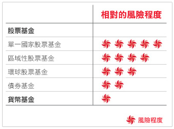 於不同的人生階段、年齡及環境,每人可承受的風險程度亦不同。基金的種類多元化,投資者可因應個人承受風險的能力,選擇不同種類的基金作投資。